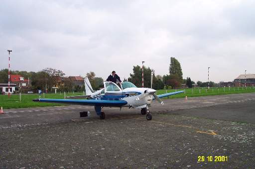 Here are a few pictures of my Beech Debonair C33 # CD-1090 registered in Belgium as OO-GEM. The aircraft is still in its 1967 original paint scheme. The engine (O-470K) is new as well as the 3-blade Hartzell. It is flown by myself and my son Ken and we really enjoy it. Home base is at Grimbergen, a small grass airfield only a few miles NE of Brussels Int'l. Thanks and best regards.